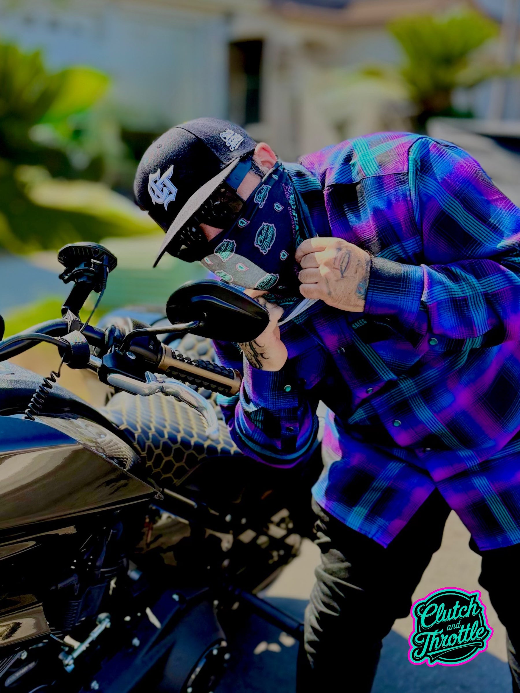 Protect your face with our OG Crest Paisley neck gaiter. This is the perfect face covering when riding with a half-shell and shades!