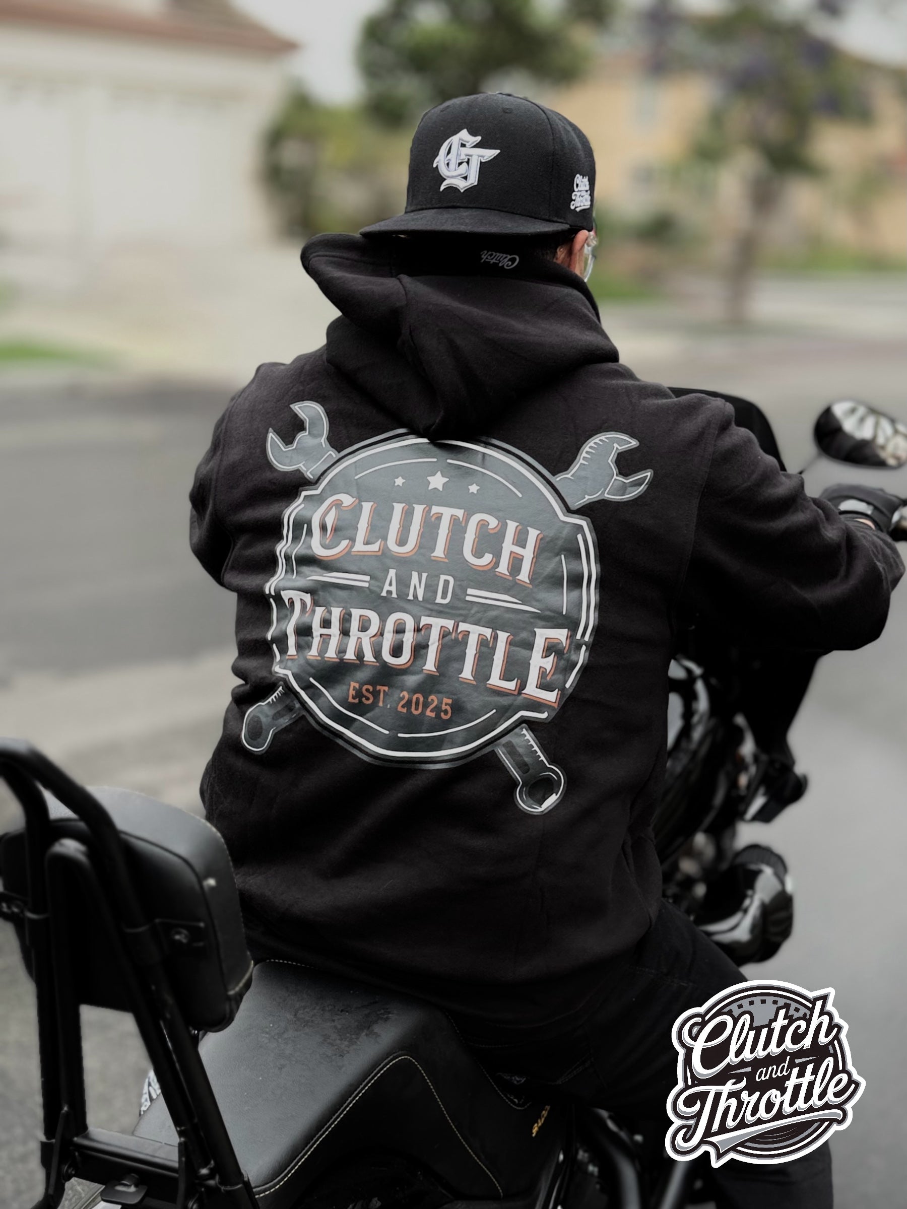 Warm up in Clutch and Throttle style with a little help from the Wrench Crest Pullover Hoodie. Custom built from the ground up, the Wrench Crest features longer body & sleeve lengths and a less restrictive waistband that doesn’t ride up. A drawstring adjustable hood and a kangaroo pouch pocket at the front means you’ll be able to keep your head and hands nice and snug, while the relaxed fit and fleece-lining will earn this hoodie some serious comfort points.