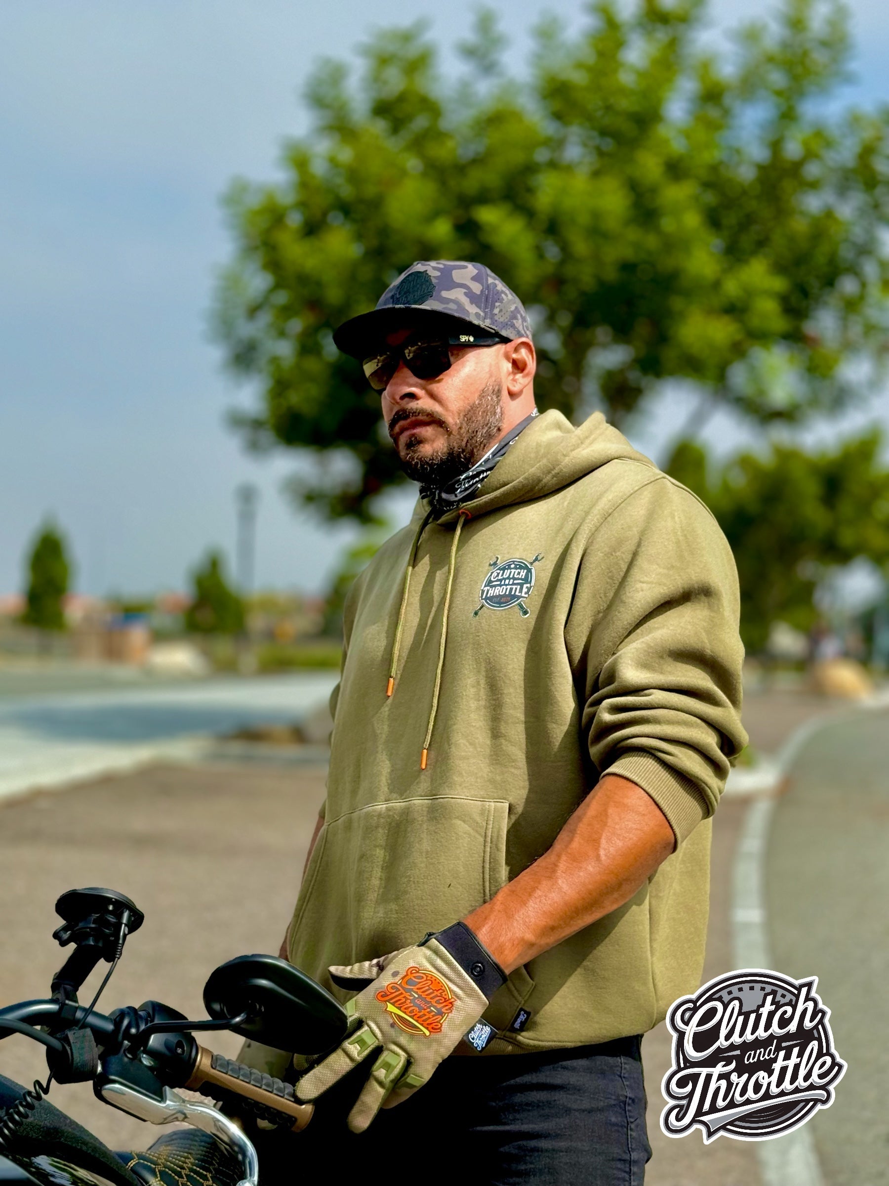 Warm up in Clutch and Throttle style with a little help from the Wrench Crest Pullover Hoodie. Custom built from the ground up, the Wrench Crest features longer body & sleeve lengths and a less restrictive waistband that doesn’t ride up. A drawstring adjustable hood and a kangaroo pouch pocket at the front means you’ll be able to keep your head and hands nice and snug, while the relaxed fit and fleece-lining will earn this hoodie some serious comfort points.