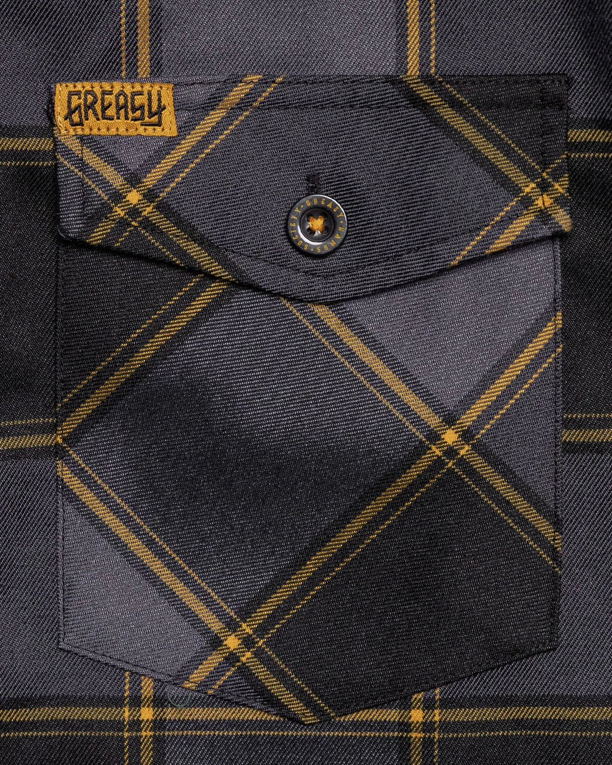 Our El Lobo flannel is a tribute to those who ride like a wild wolf. Featuring a striking gray and orange pattern, this flannel blends bold style with everyday versatility. Designed for those who live the custom life, it’s built for comfort and durability. Crafted with our Proprietary Greasy Hands Society™ poly blend the El Lobo flannel offers just the right amount of stretch, making it your go-to for any occasion—whether you're in the shop or out on the road.
