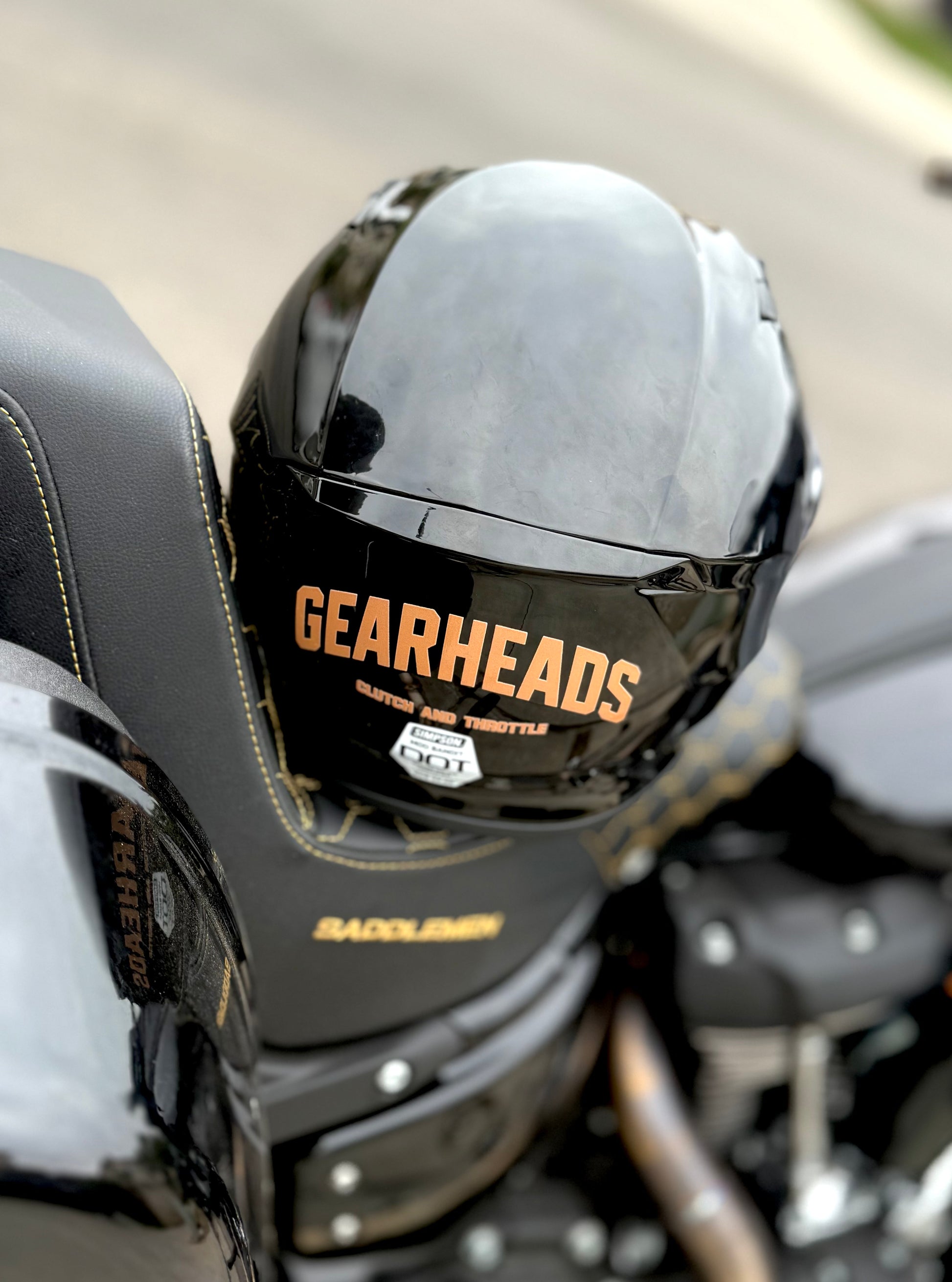 Apply this transfer decal to your favorite helmet! Rep that Gearhead Gang!