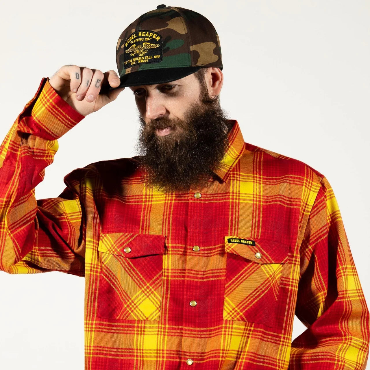 Rebel Reaper Men’s Georgie Flannel With Snap Pearl Yellow Buttons