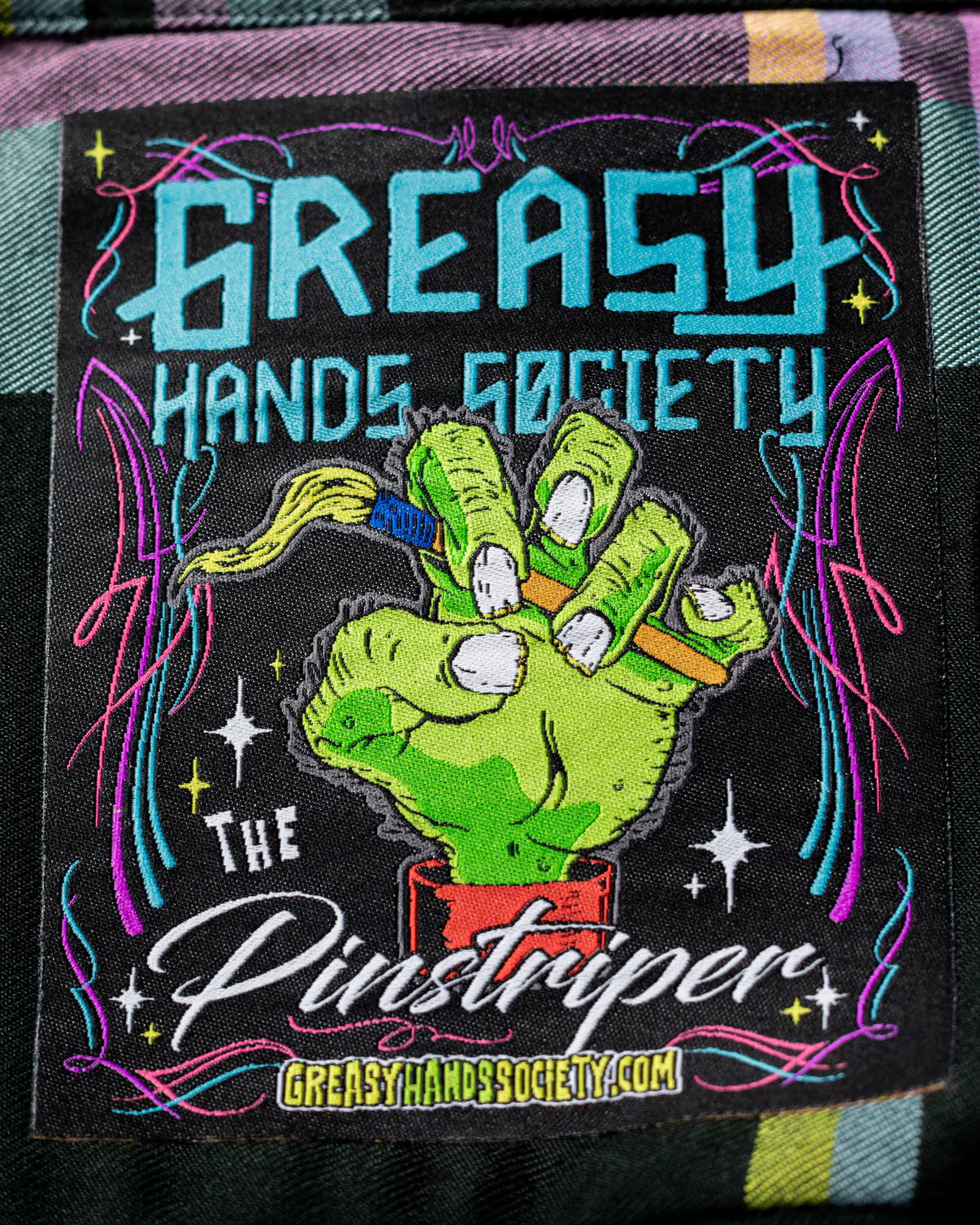 Designed to provide optimal comfort and unrestricted movement using our Proprietary Greasy Hands Society Material blend that won't shrink, fade, or roll. Its spacious chest and shoulder area offer extra room and with some flex ensuring you can move with ease and comfort. The Pinstriper Flannel features a subtle Black base with Malibu Blue, Heliotrope Pink, and Mustard Yellow highlights that are true to the environment. It offers a large range of motion with extra comfort in the chest and shoulders so you can get in there and turn wrenches whenever needed.