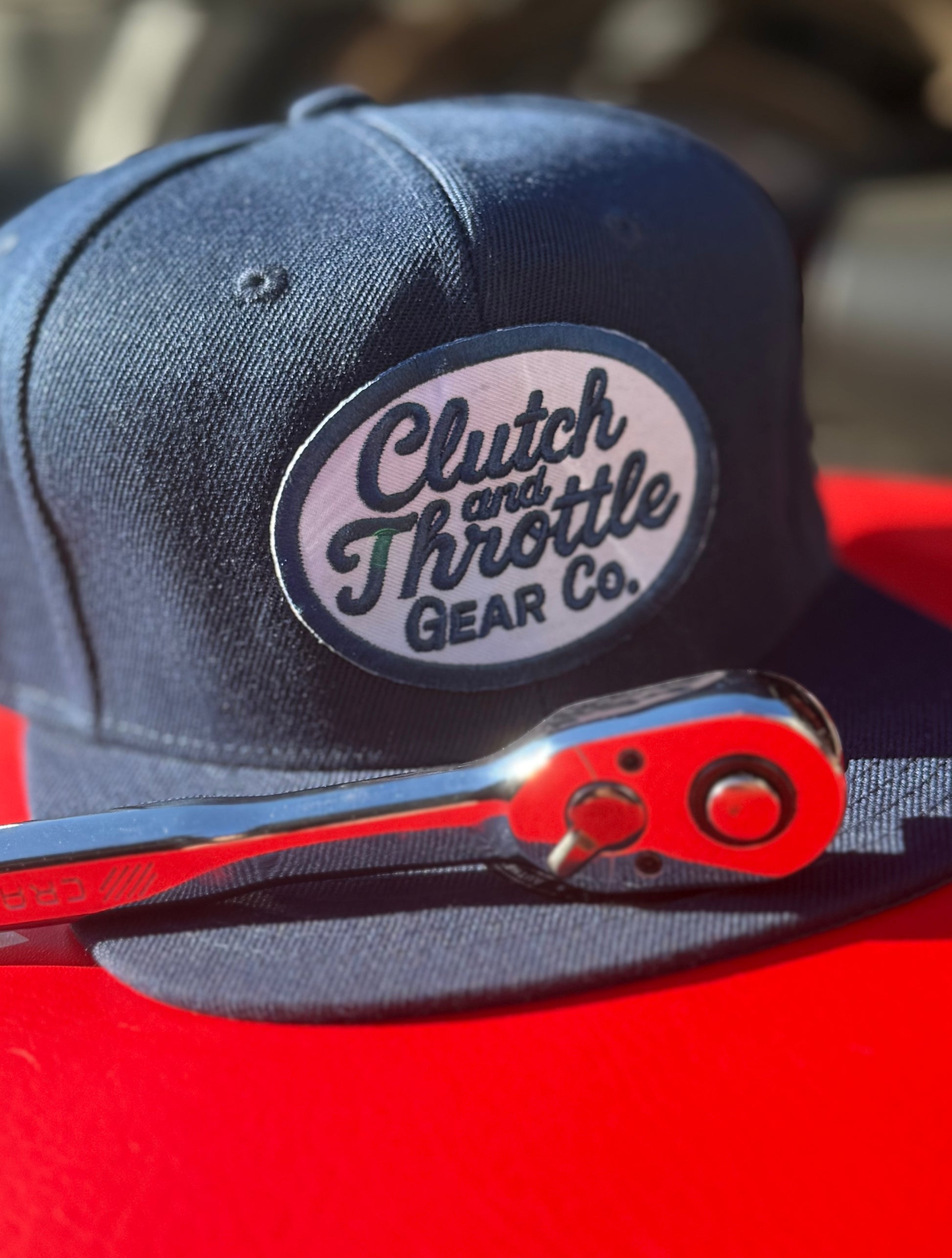 When you're not wearing a helmet to protect that dome, cover it with our Grease Monkey Snapback! This is the perfect hat to hang off your jean belt loop when riding.