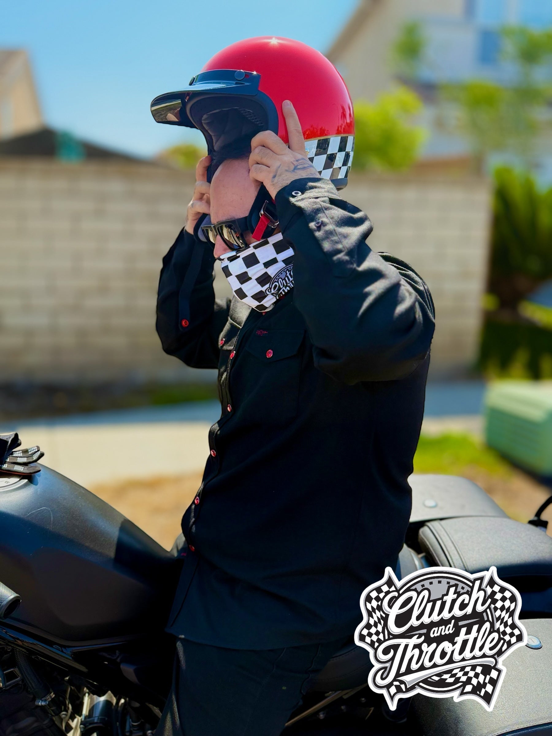 Protect your face with our OG Crest Checkered neck gaiter. This is the perfect face covering when riding with a half-shell and shades!