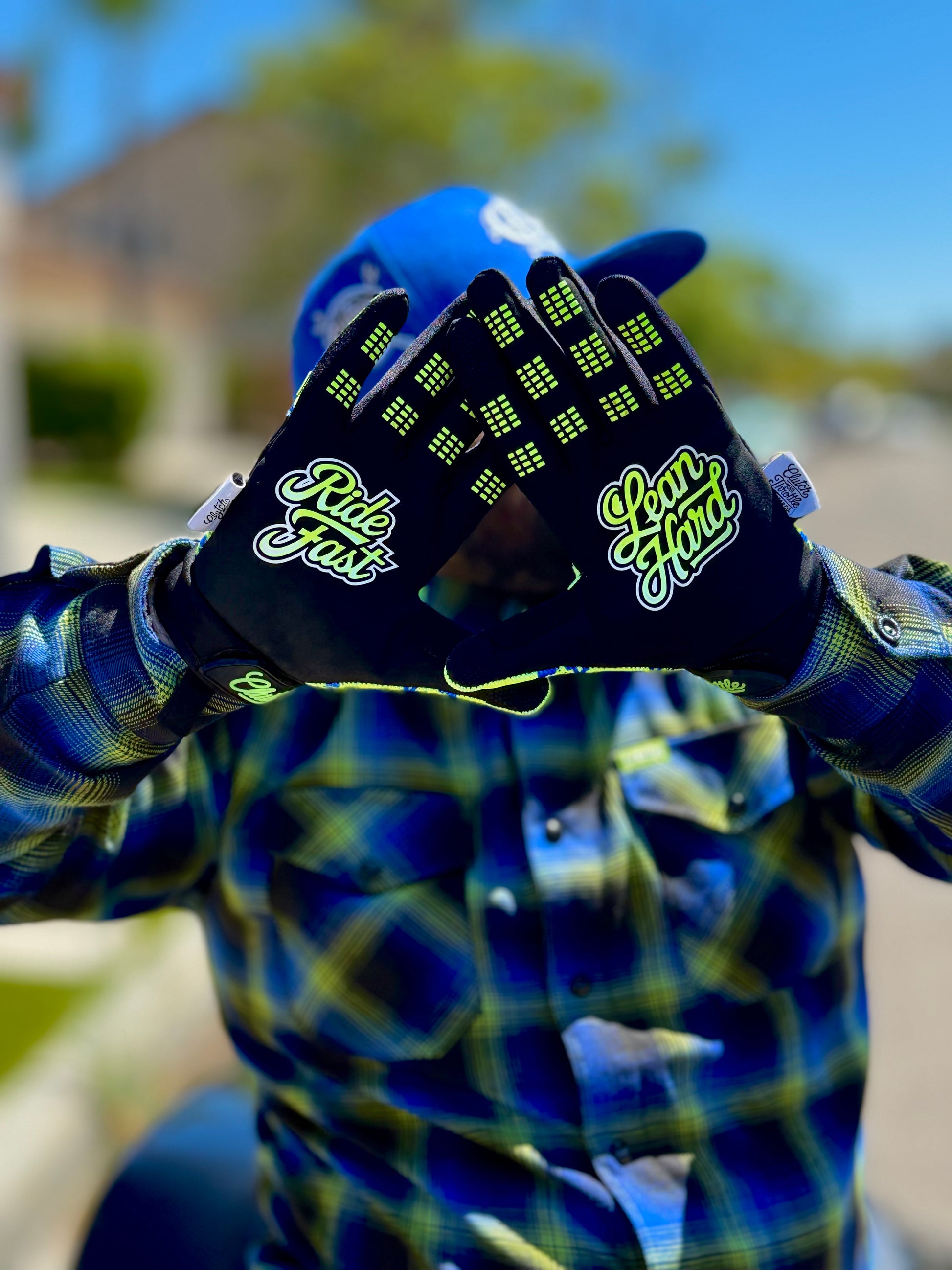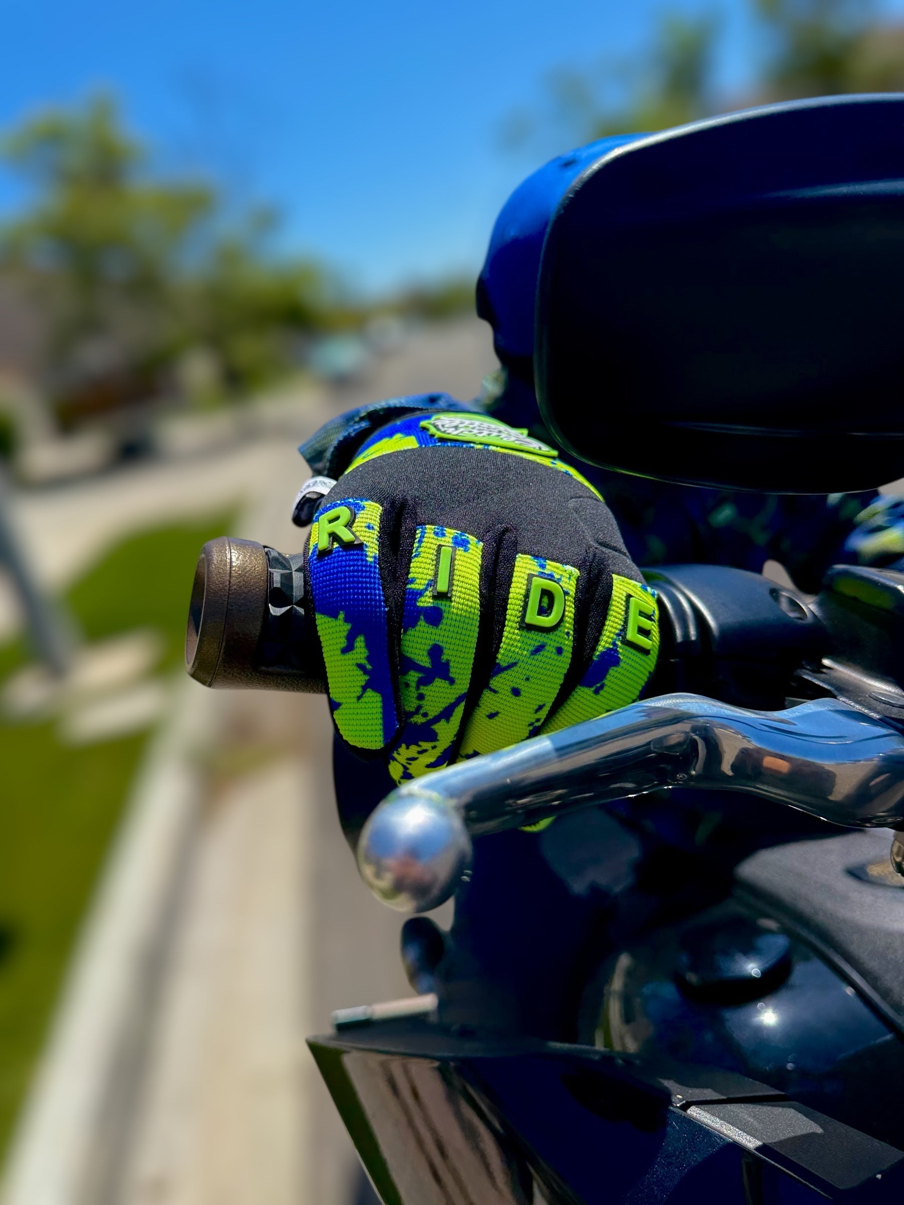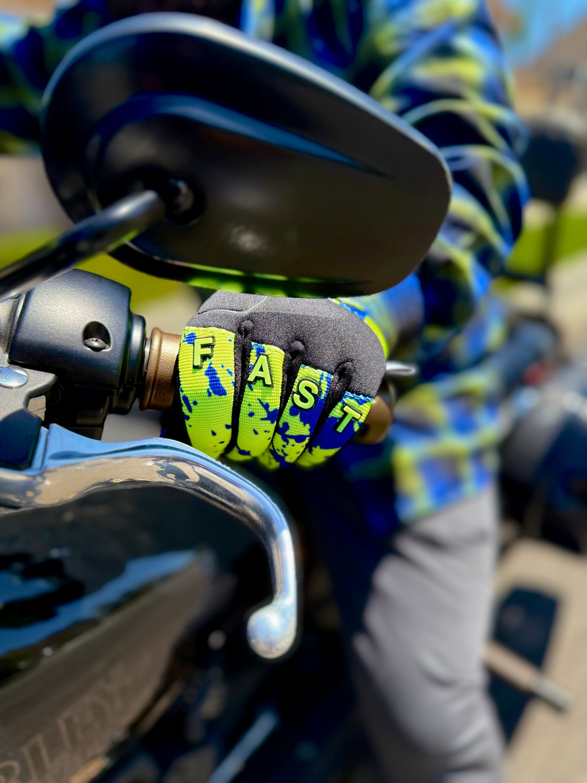 - PVC “RIDE FAST” lettering at the knuckles