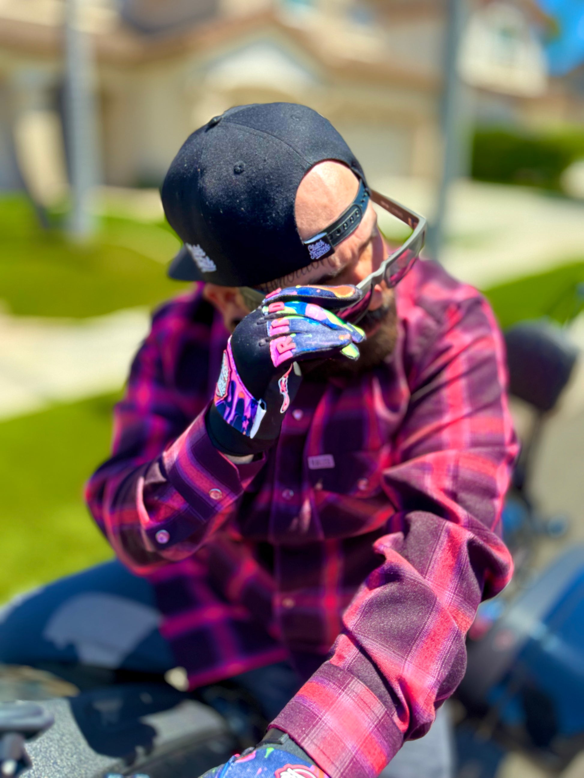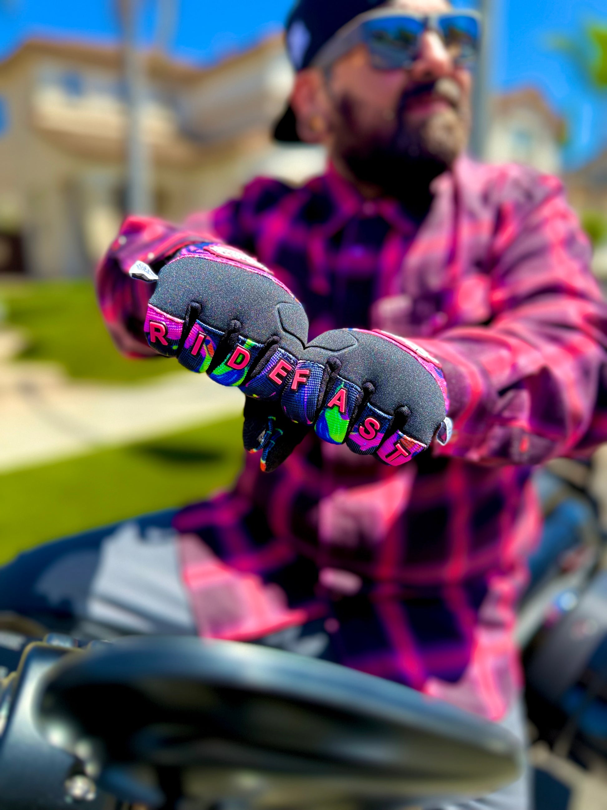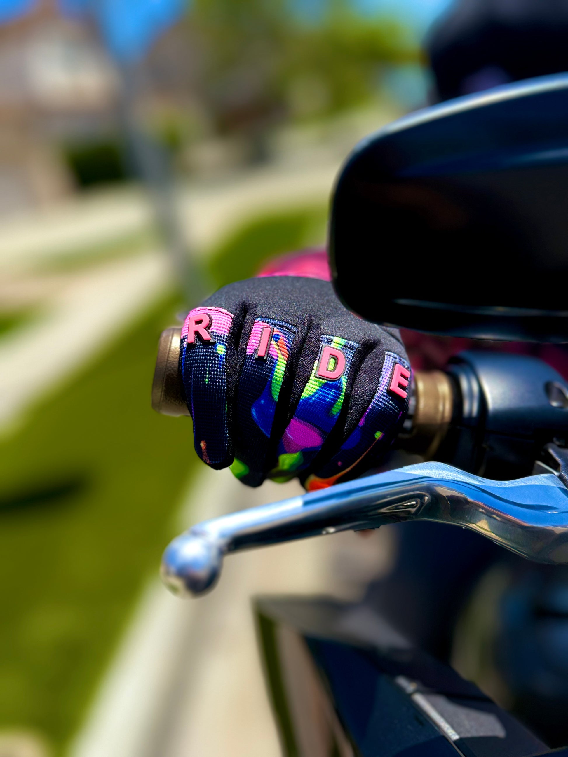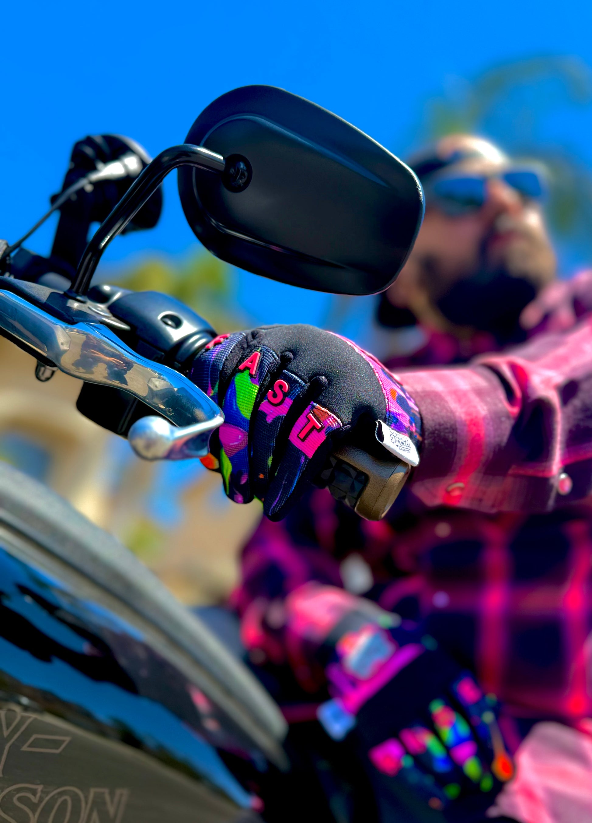 Ride in style with our OG Crest Splatter motorcycle gloves. Different colorways available to fit your unique style.