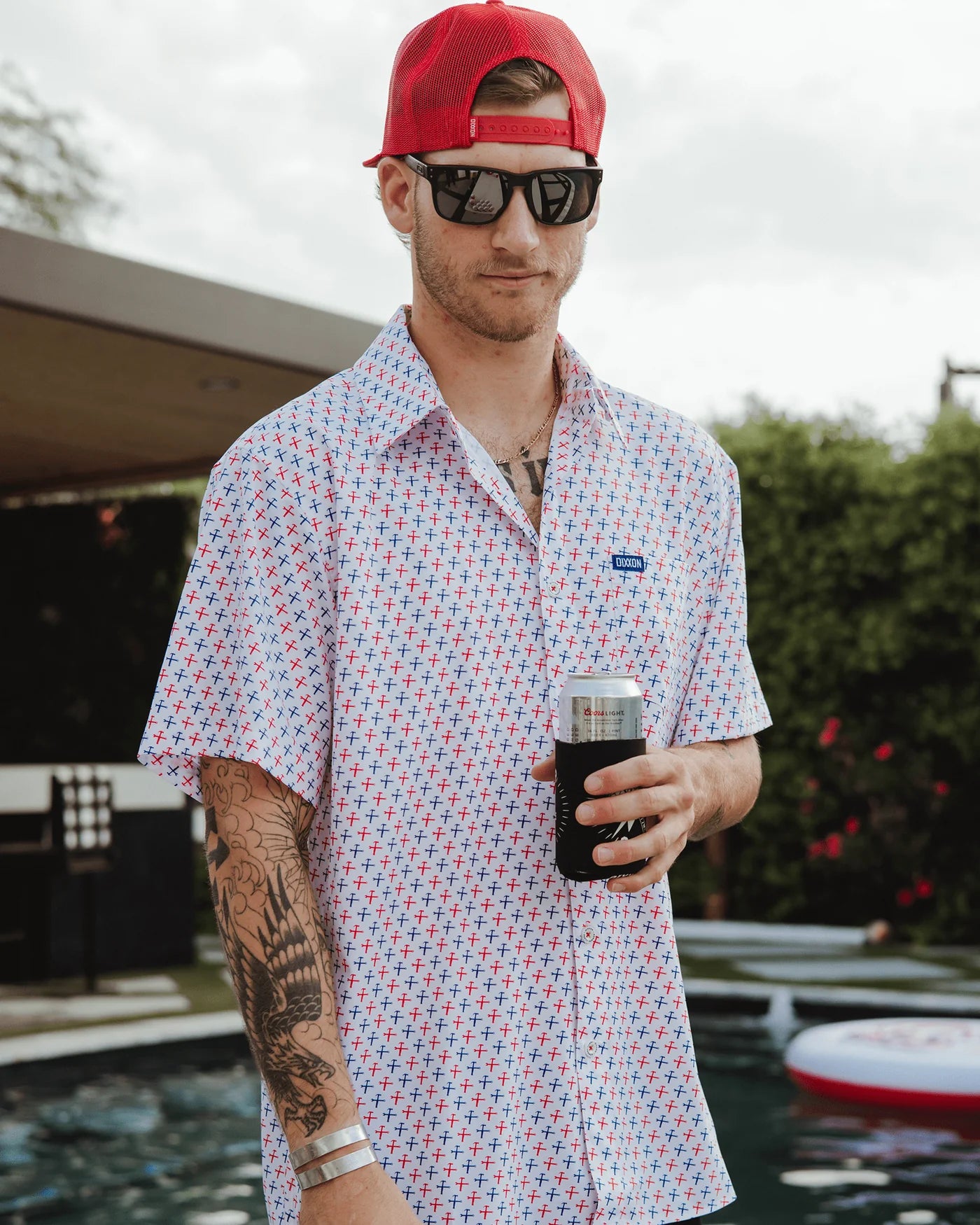 Add some party vibes to an everyday essential with the Party Hammers Short Sleeve. Constructed with an easy fluid fabric, this button up party shirt was designed for a comfortable and laid-back wear. Soft and lightweight with a shrink and wrinkle resistant finish, the Party Hammers is a must-have for anyone looking to have a good time!