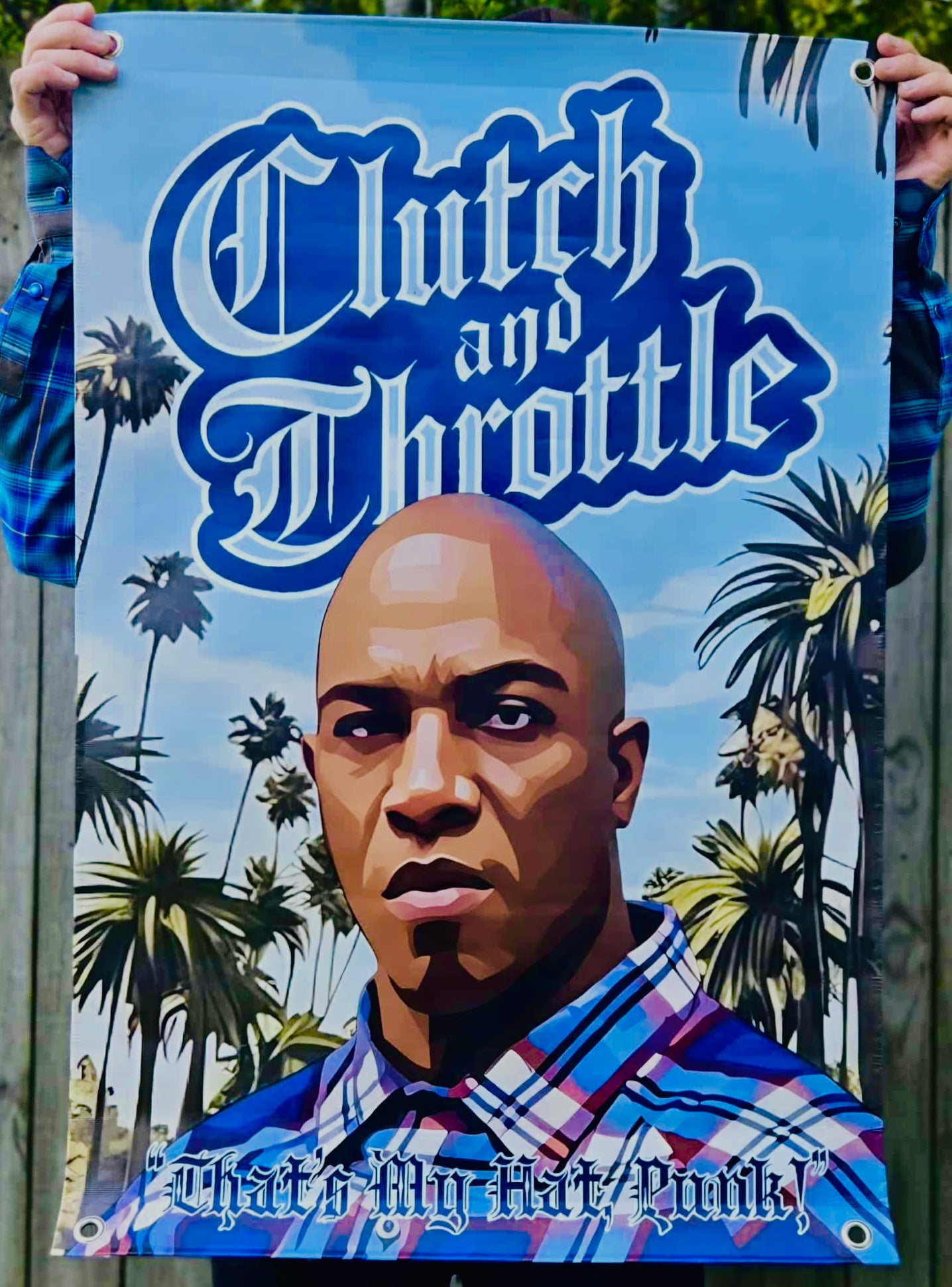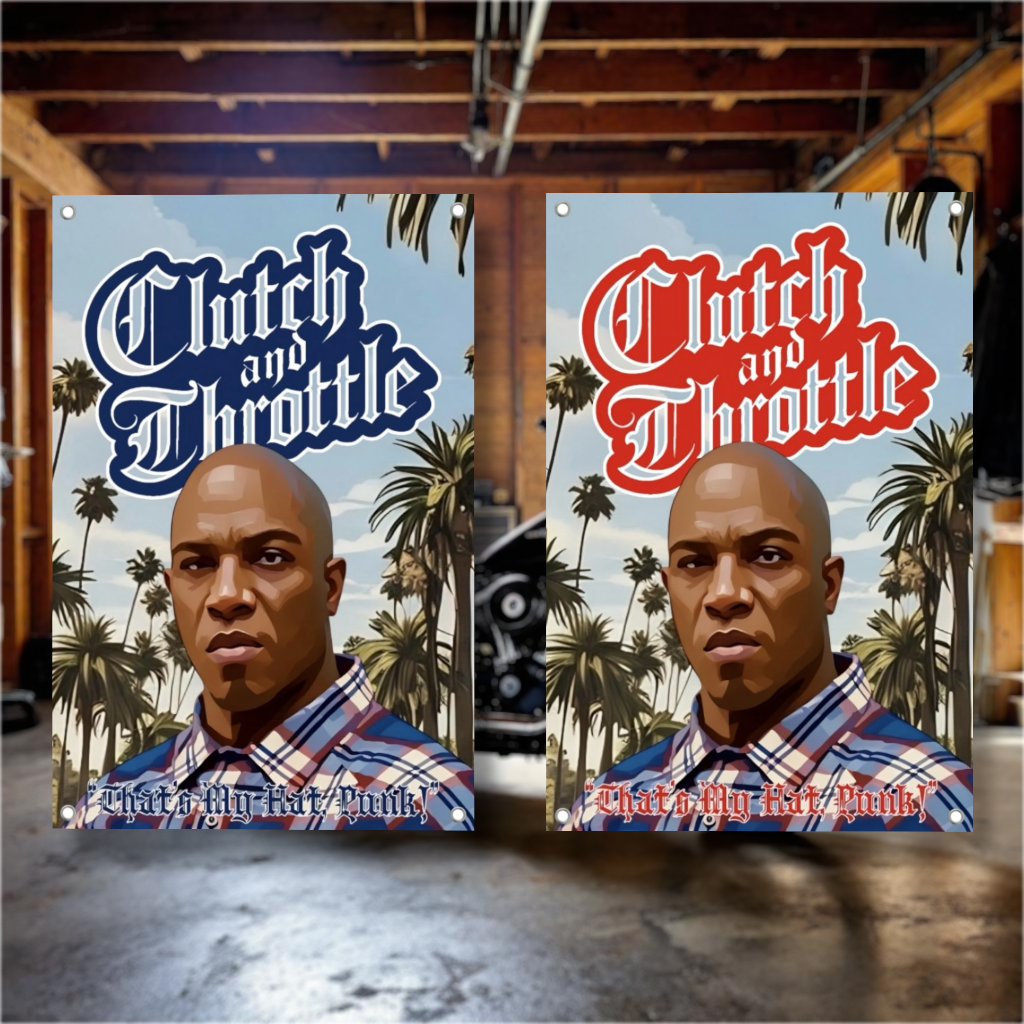 Hook up your garage or man cave with the Limited Edition Chain Snatcher Banner! Image based on Friday’s bully Deebo and includes the Old English Clutch and Throttle logo and a “That’s My Hat Punk!” Quote!