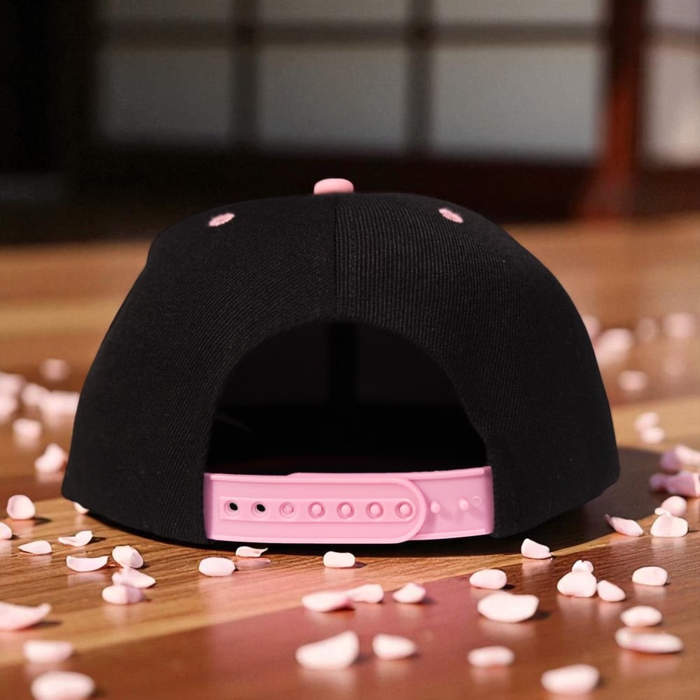 Built to run with the Geisha Flannel and tee, the Geisha 6-Panel Snapback is clean, mean, and dialed. A blackout crown sets the stage; light-pink bill, under-visor, eyelets, and button hit like sakura in the night. The woven patch is color-matched to the flannel—hot pink + teal—and stitched down (never glued) for real-deal durability. Structured, high-profile, flat bill in 100% polyester holds shape from first wear to last call. Snap it shut. Let the contrast do the talking.